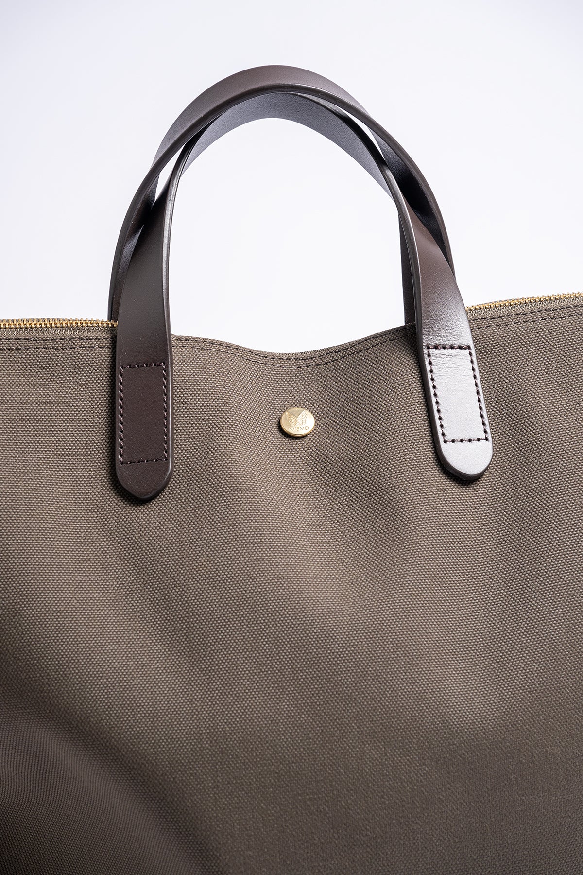 Mismo presenterar en elegant och funktionell Tote bag i slitstark nylon med exklusiva detaljer i brunt läder. Den militärgröna färgen kombineras med detaljer i läder för ett sofistikerat uttryck som passar både till vardag och resa.