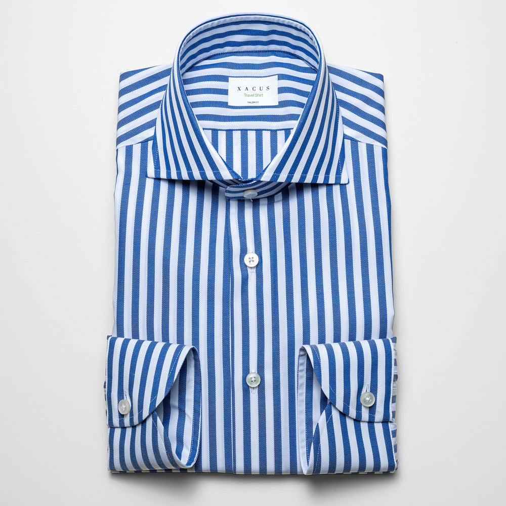 • Skjortan stängs med matchande pärlemoknappar och har en klassisk krage. Skjortan är svagt slimmad i modellen.