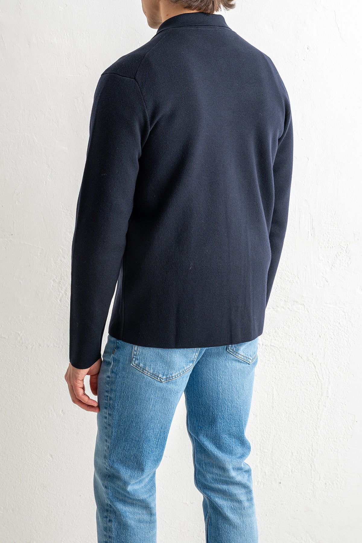 Cardiganen har en klassisk navyblå färg och en regular passform som gör den enkel att bära över skjorta eller t-shirt. Den stilrena designen med krage och knäppning framtill ger ett sofistikerat uttryck för både arbete och vardag.