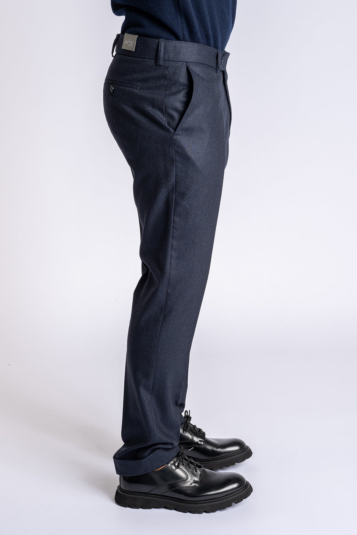•    Byxan har två stycken snedställda fickor samt två stycken dolda fickor baktill som stängs med en knapp. Byxan är normal hög i midjan och är avsmalnande ner till foten som avslutas med slag.