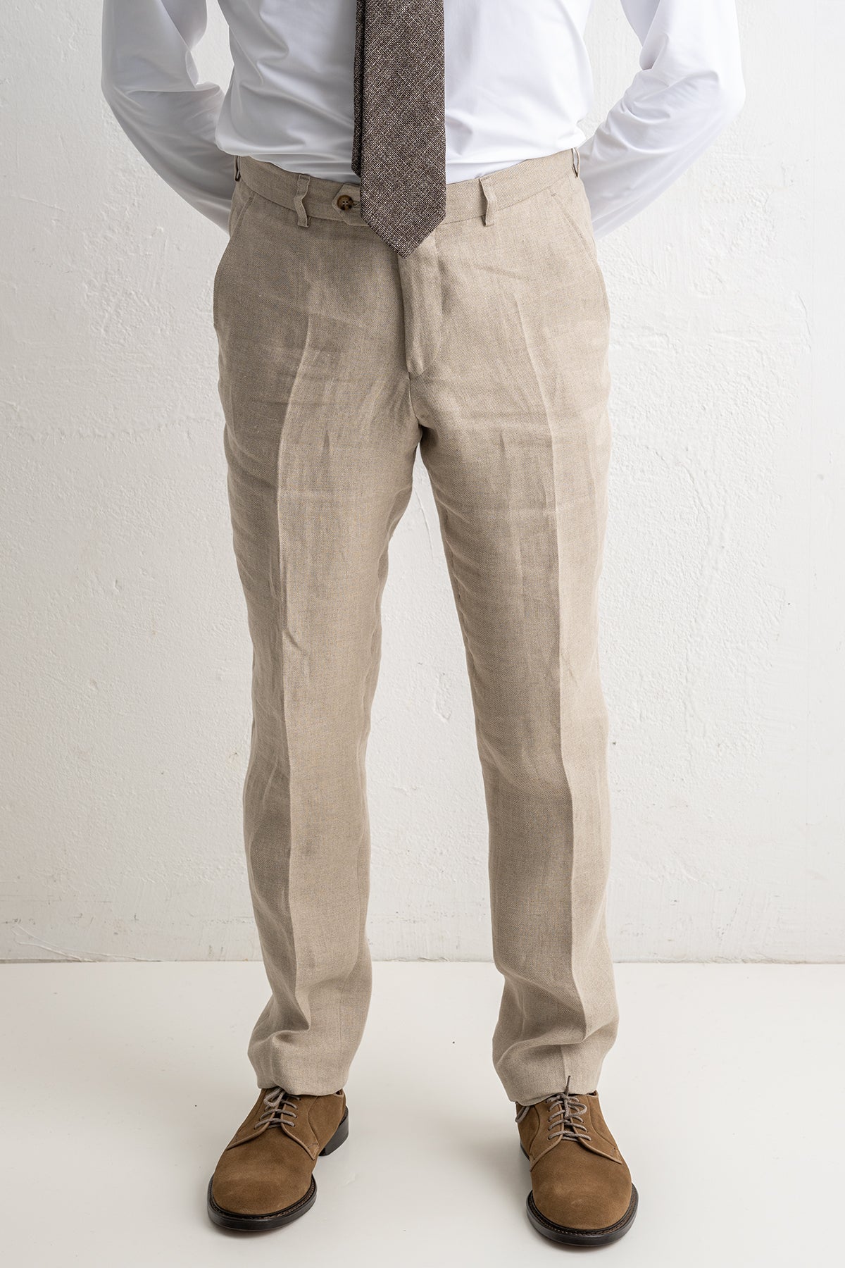 Studio 73 presenterar en elegant beige linnebyxa som kombinerar italienskt hantverk med tidlös design. Tillverkad i 100 % linne erbjuder den ett svalt och behagligt plagg – perfekt för varma sommardagar. Materialet ger byxan en naturlig struktur och ett avslappnat men ändå sofistikerat uttryck.
