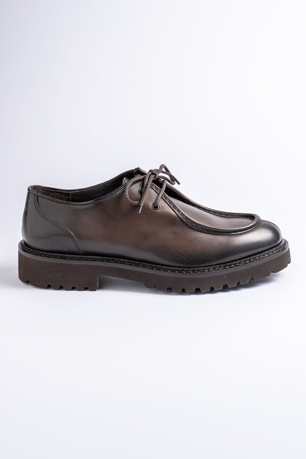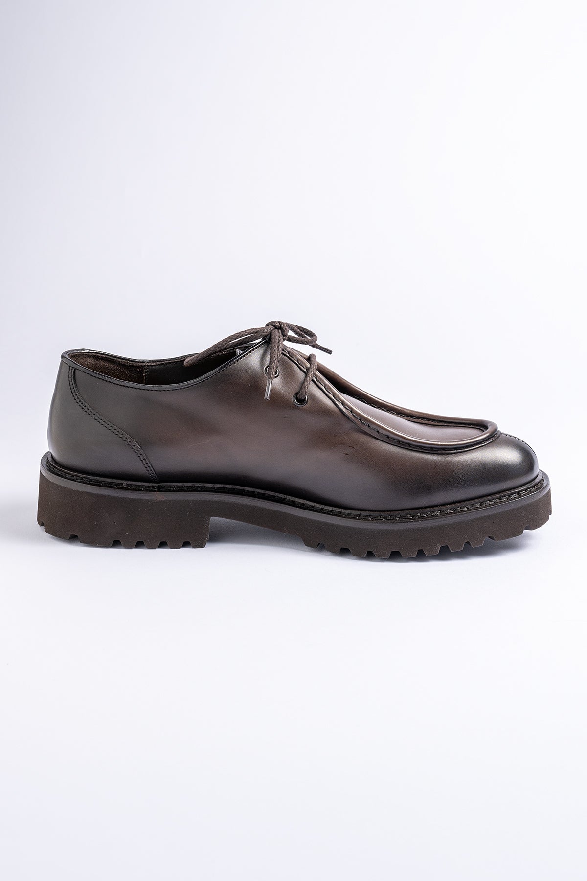 Doucal´s bruna lädersko är en tidlös derby med premiumhantverk från Italien. Det mjuka, polerade lädret får en elegant lyster som åldras vackert och formar sig efter foten över tid.