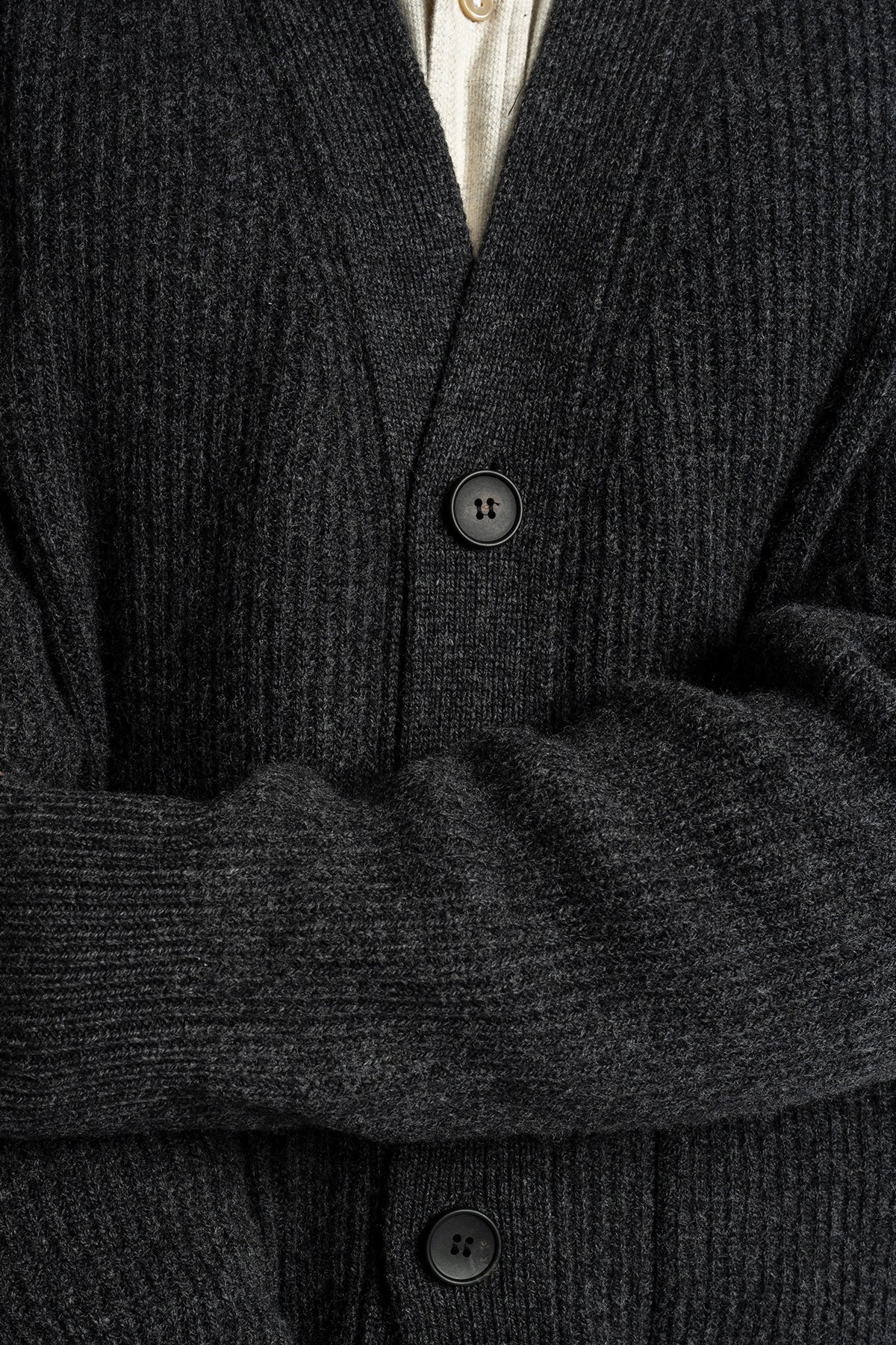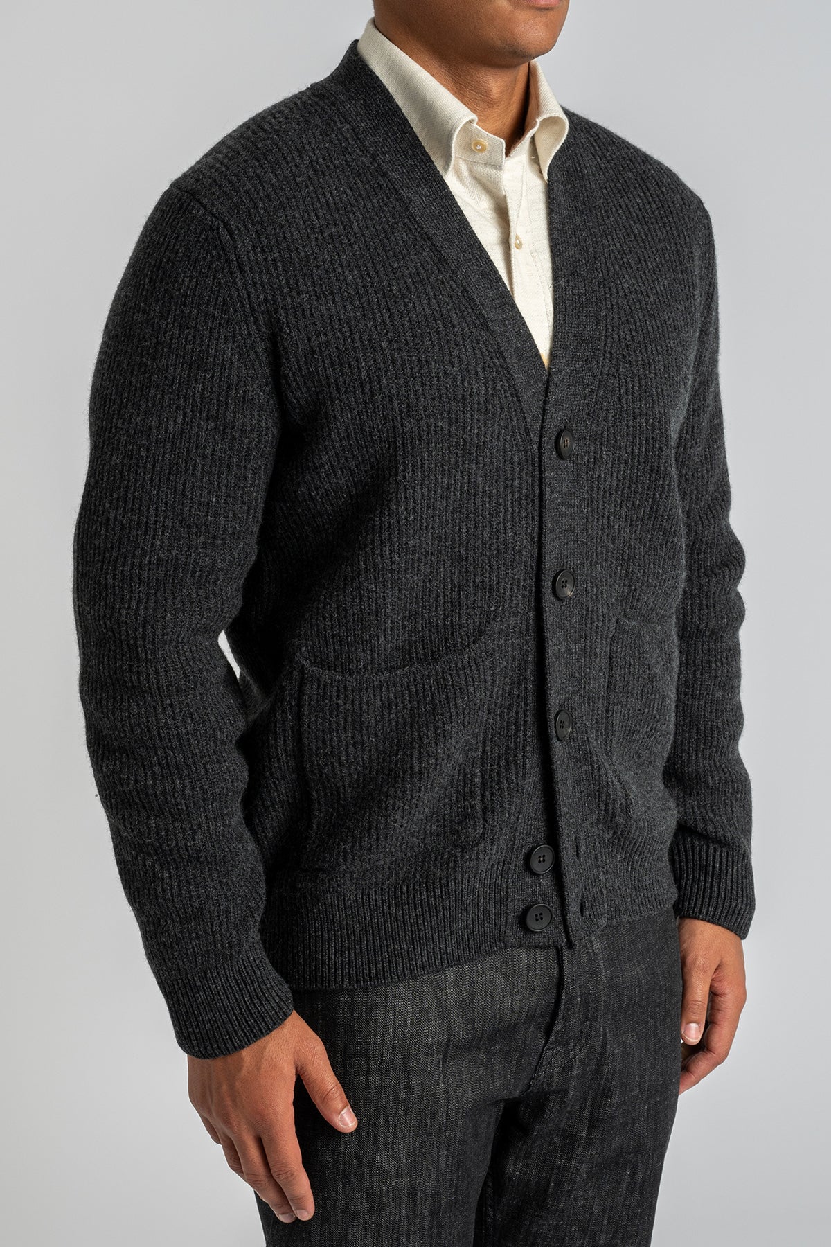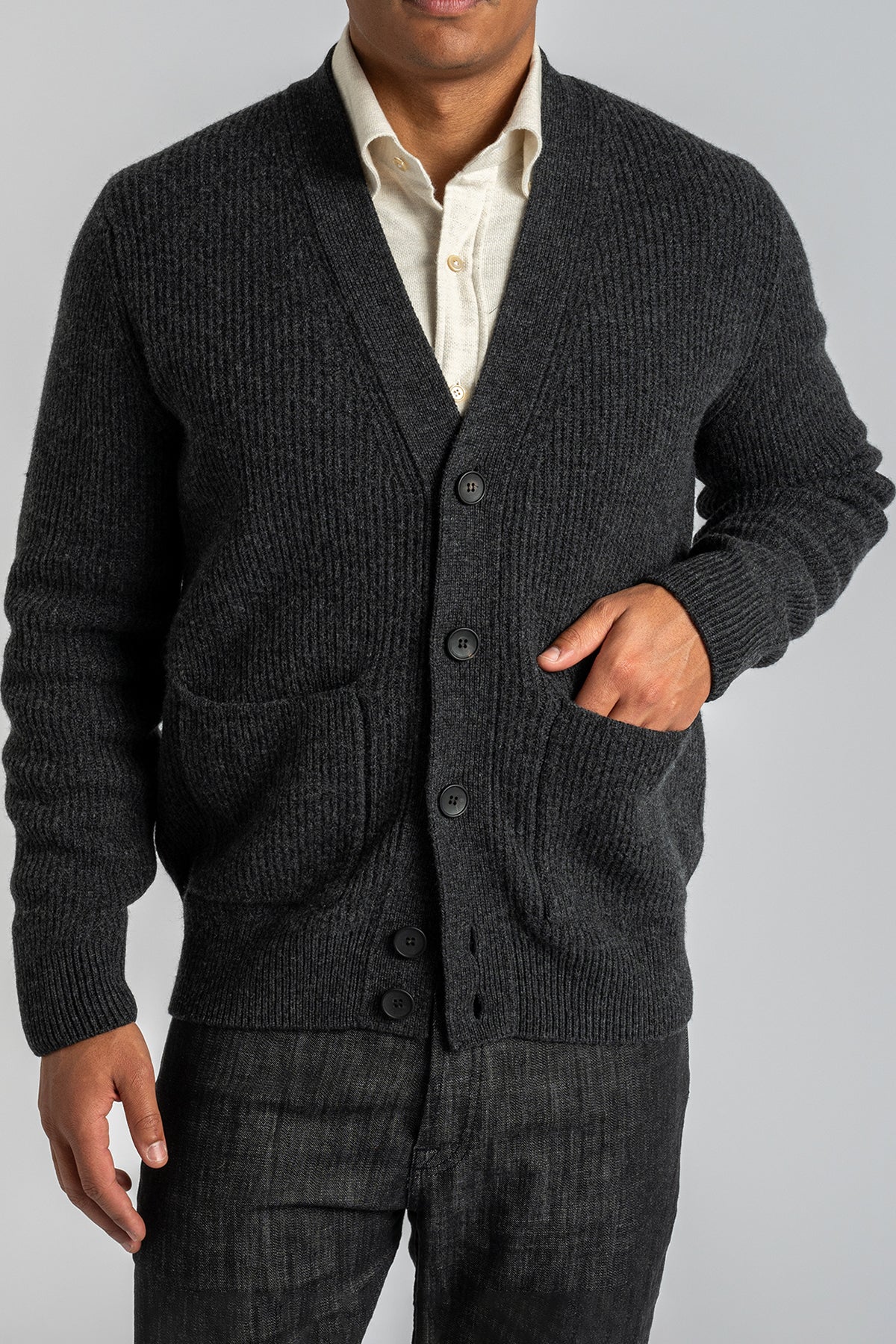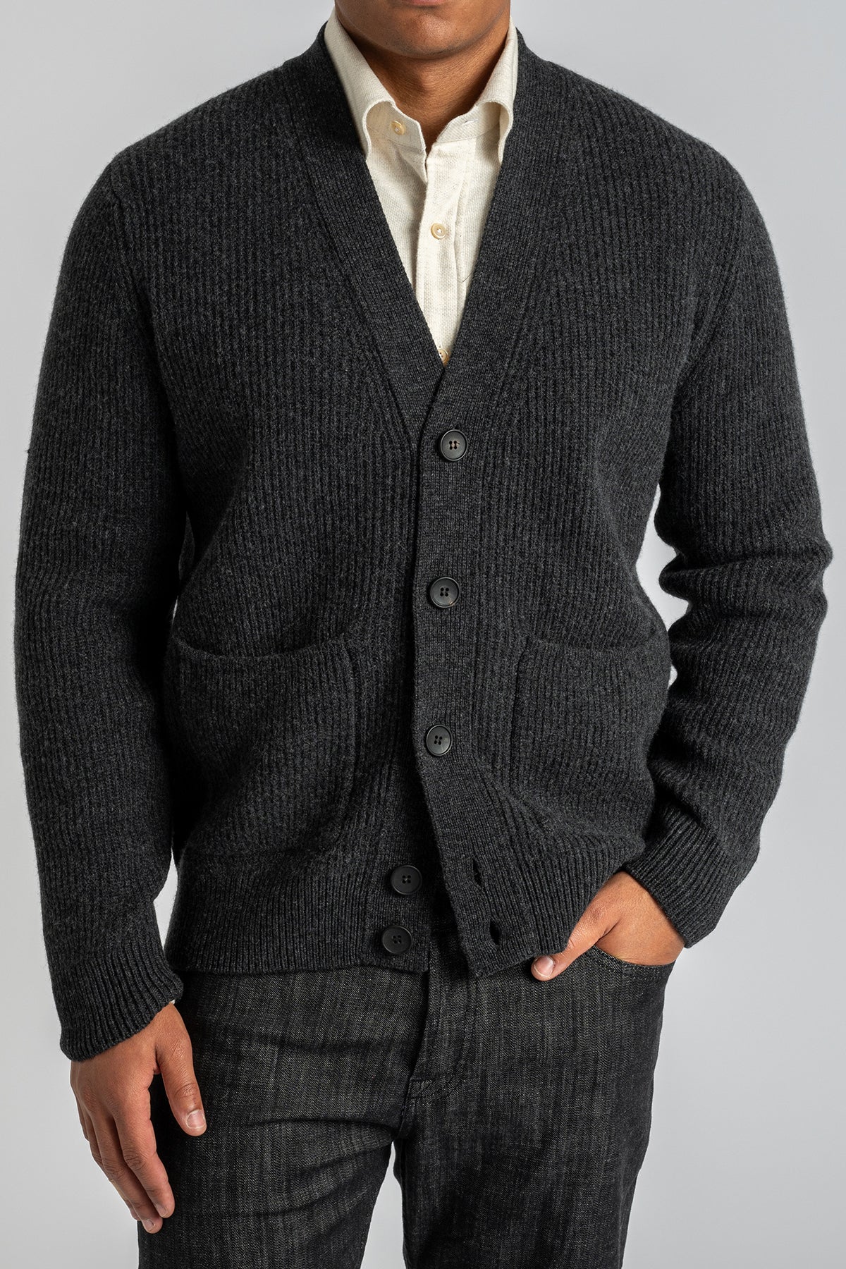 Ribbed Wool Cashmere Cardigan Antracite