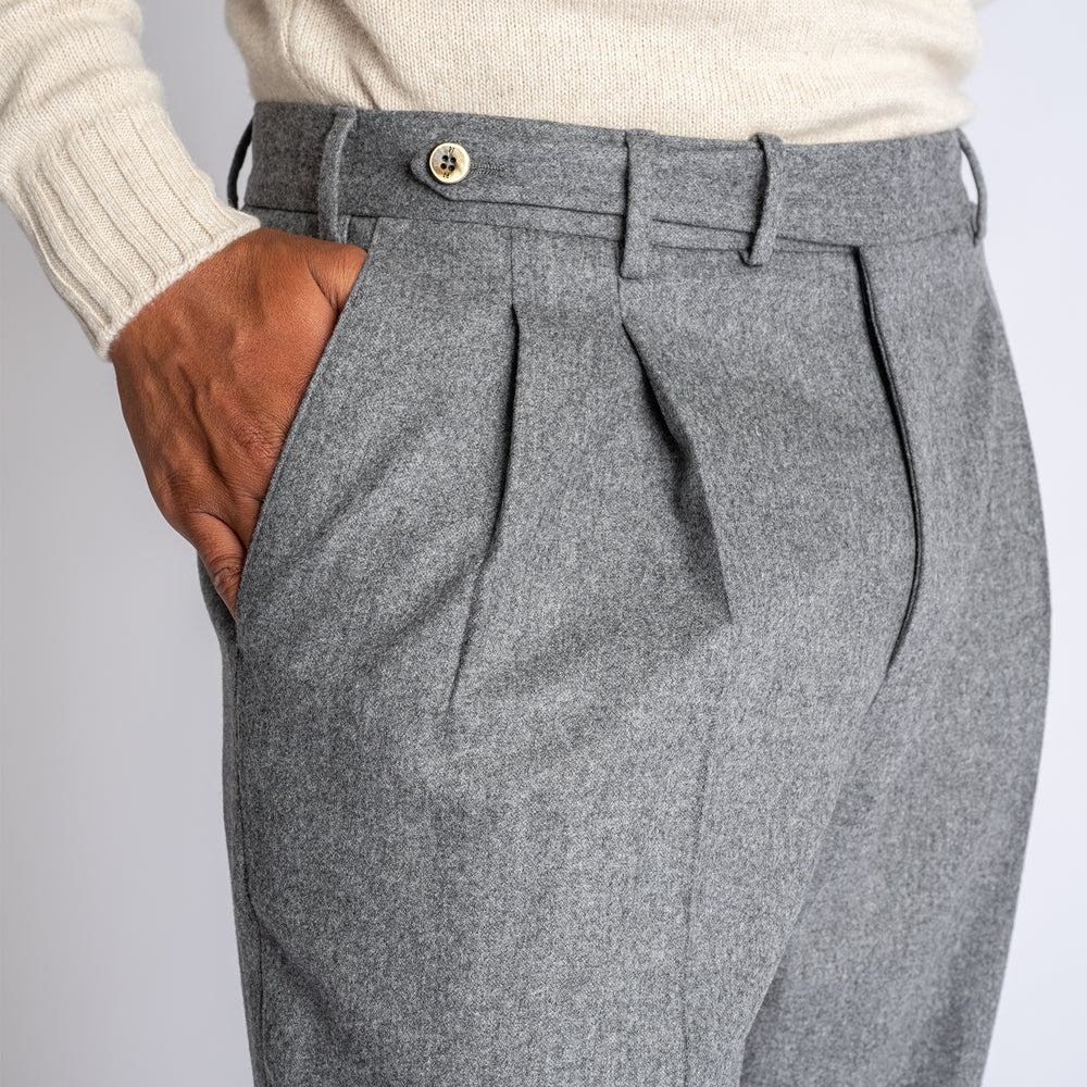 Carrot Wool Cashemere Two Pleated Trouser Medium Grey
