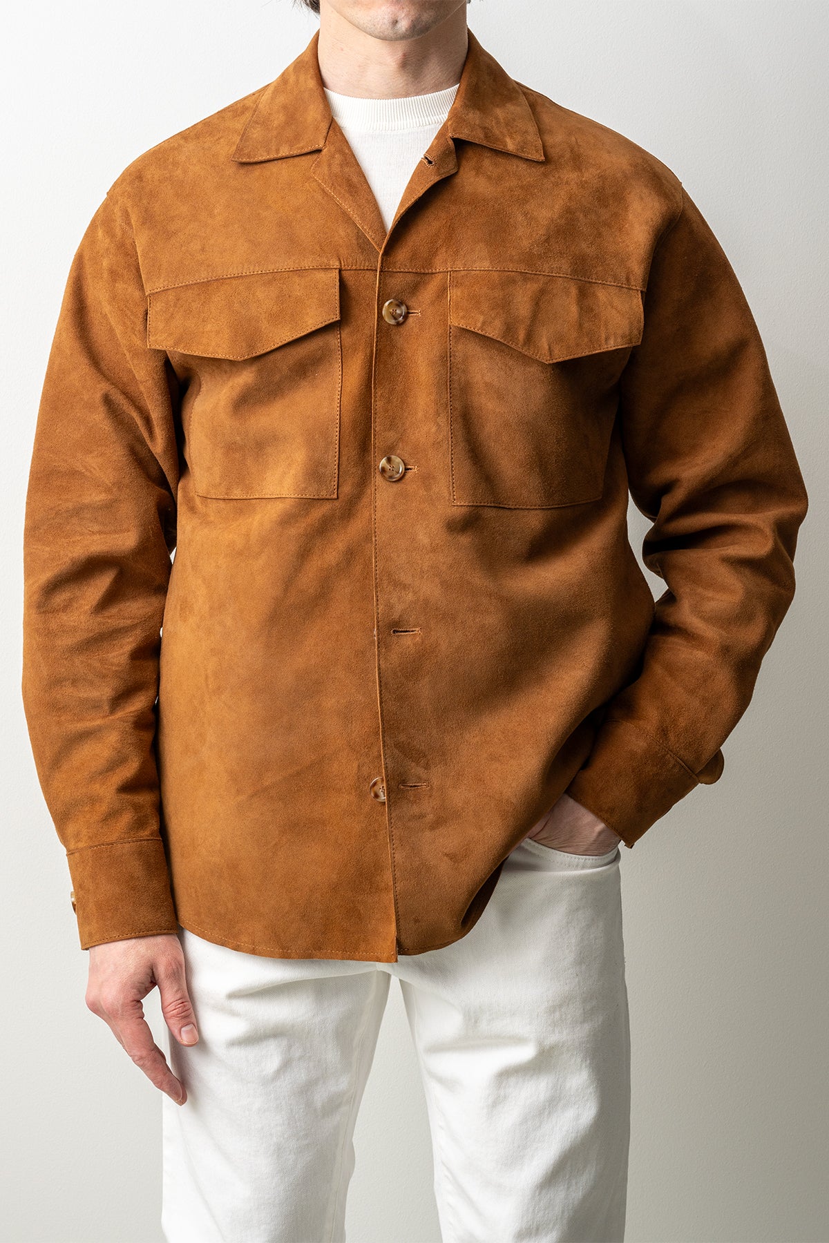 Lardini presenterar en exklusiv jacka i mjuk mocka med en varm cognacston som ger ett sofistikerat och tidlöst uttryck. Det följsamma materialet kombinerar komfort med lyxig känsla och gör jackan till ett stilfullt val för den medvetna garderoben.
