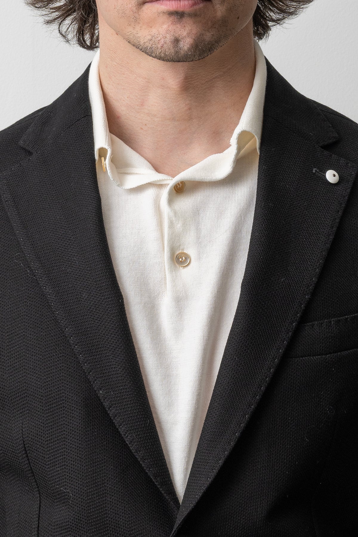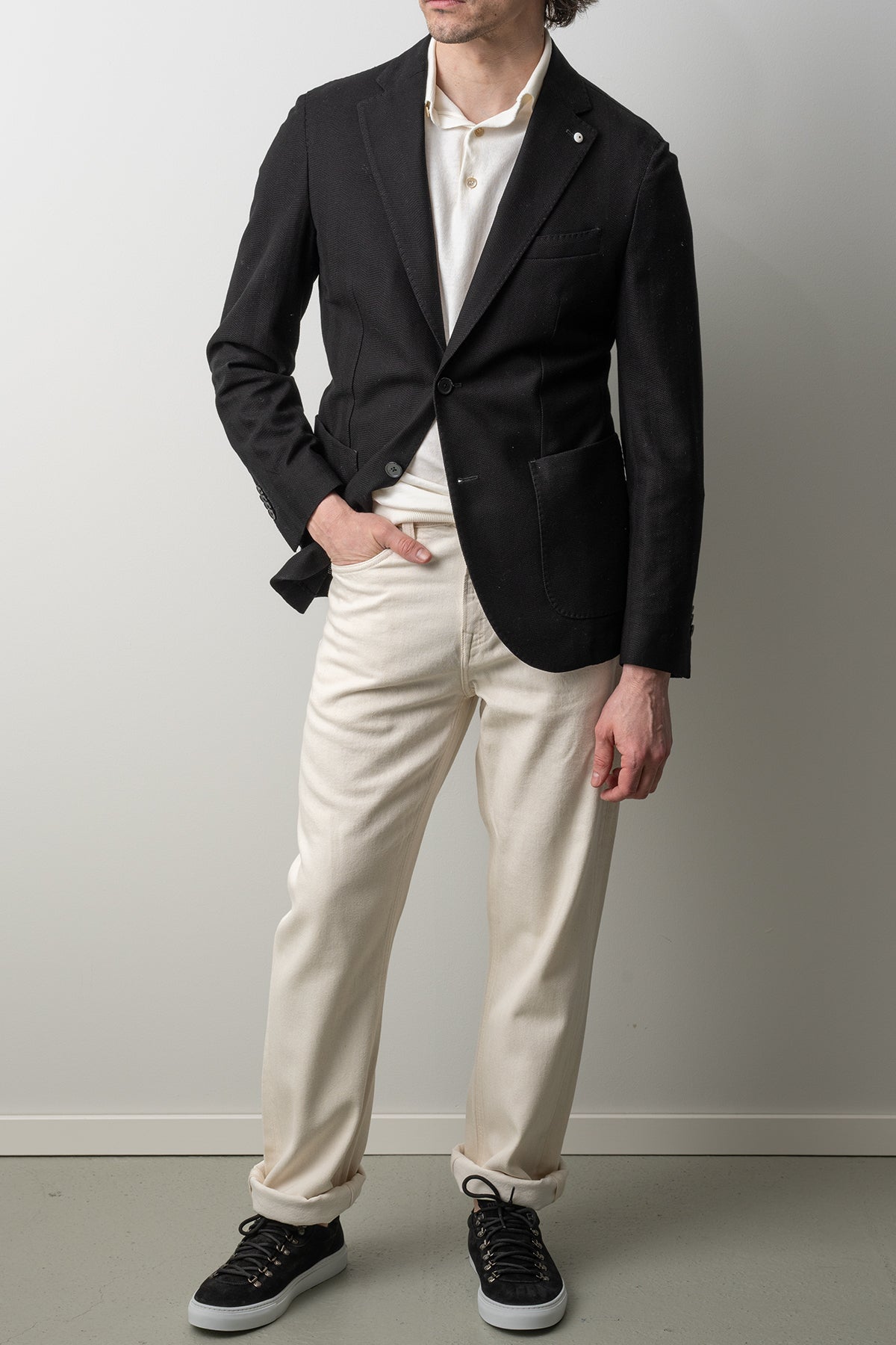 L.B.M. 1911 presenterar en stilren kavaj i en svart nyans som kombinerar italiensk elegans med modern funktion. Tillverkad i en exklusiv bomull erbjuder den en mjuk, lätt känsla med subtil lyster – perfekt för dig som söker både komfort och sofistikation.