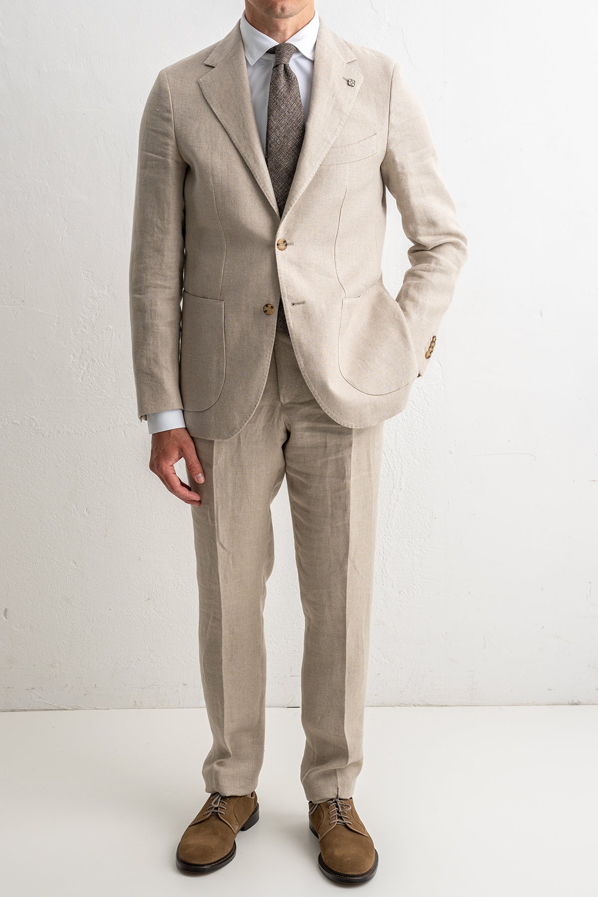Studio 73 presenterar en stilren kavaj i 100 % linne – ett material som kombinerar naturlig elegans med sval komfort. Den beige tonen förstärker sommarkänslan och gör kavajen till ett perfekt val för såväl kontoret som mer avslappnade tillfällen under de varmare månaderna. Tillverkad i Italien, med fokus på hantverk och kvalitet.