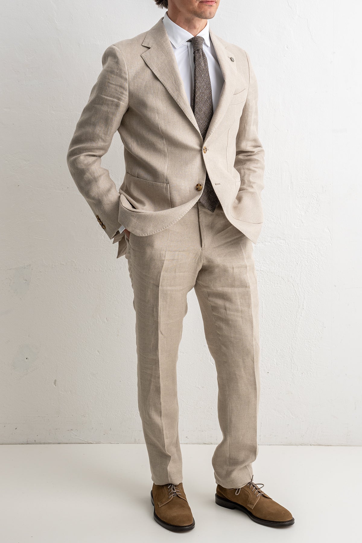 Kavajen är ett mångsidigt plagg i garderoben och passar utmärkt både till vardagsbruk och formella sommarträffar. Linnets andningsförmåga gör den särskilt uppskattad under varma dagar, samtidigt som den behåller sin struktur och form. Finns med tillhörande byxa.