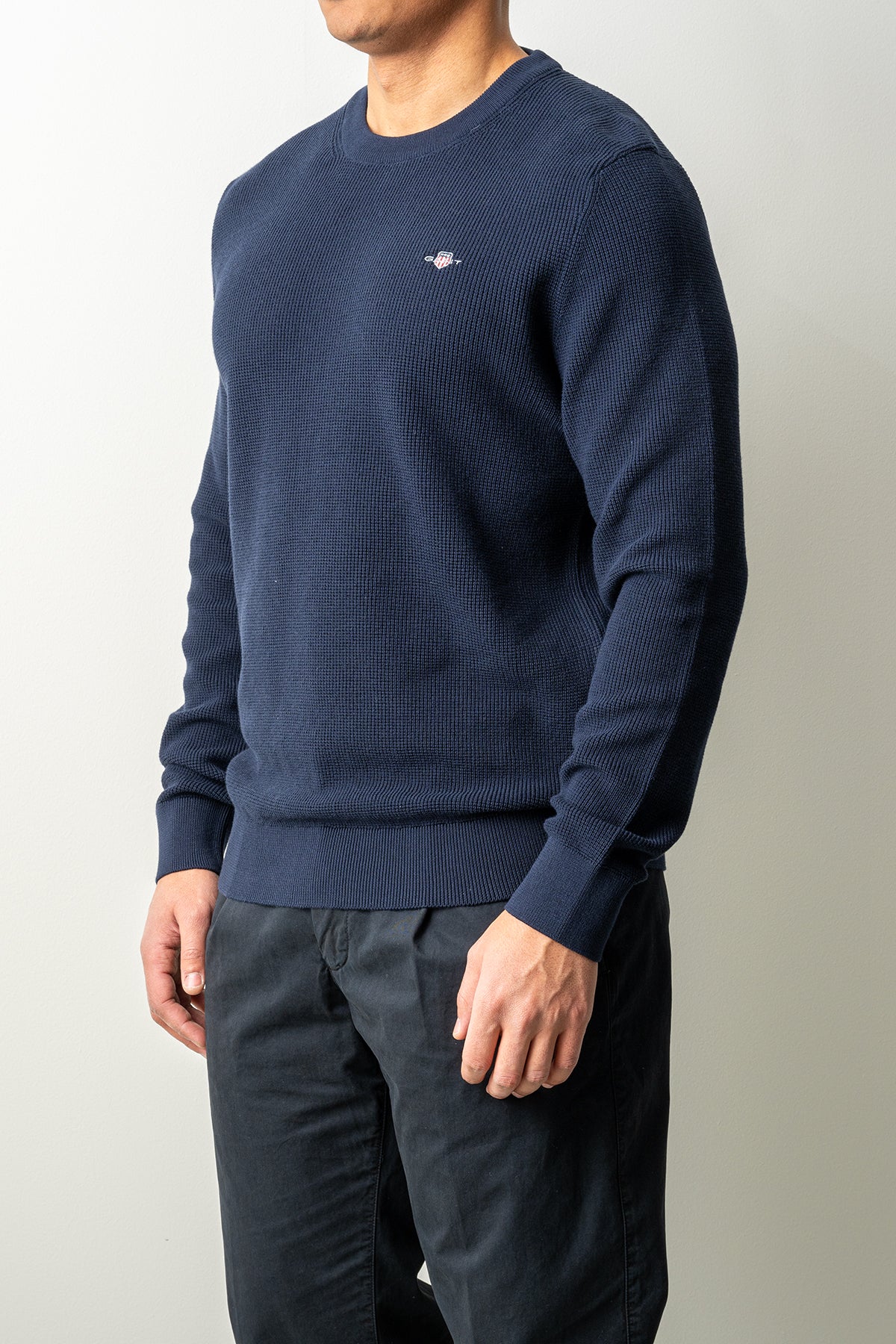 Gant presenterar en stilren blå tröja som kombinerar klassisk design med modern komfort. Ett mångsidigt plagg som passar lika bra till vardag som till avslappnade helglooks.