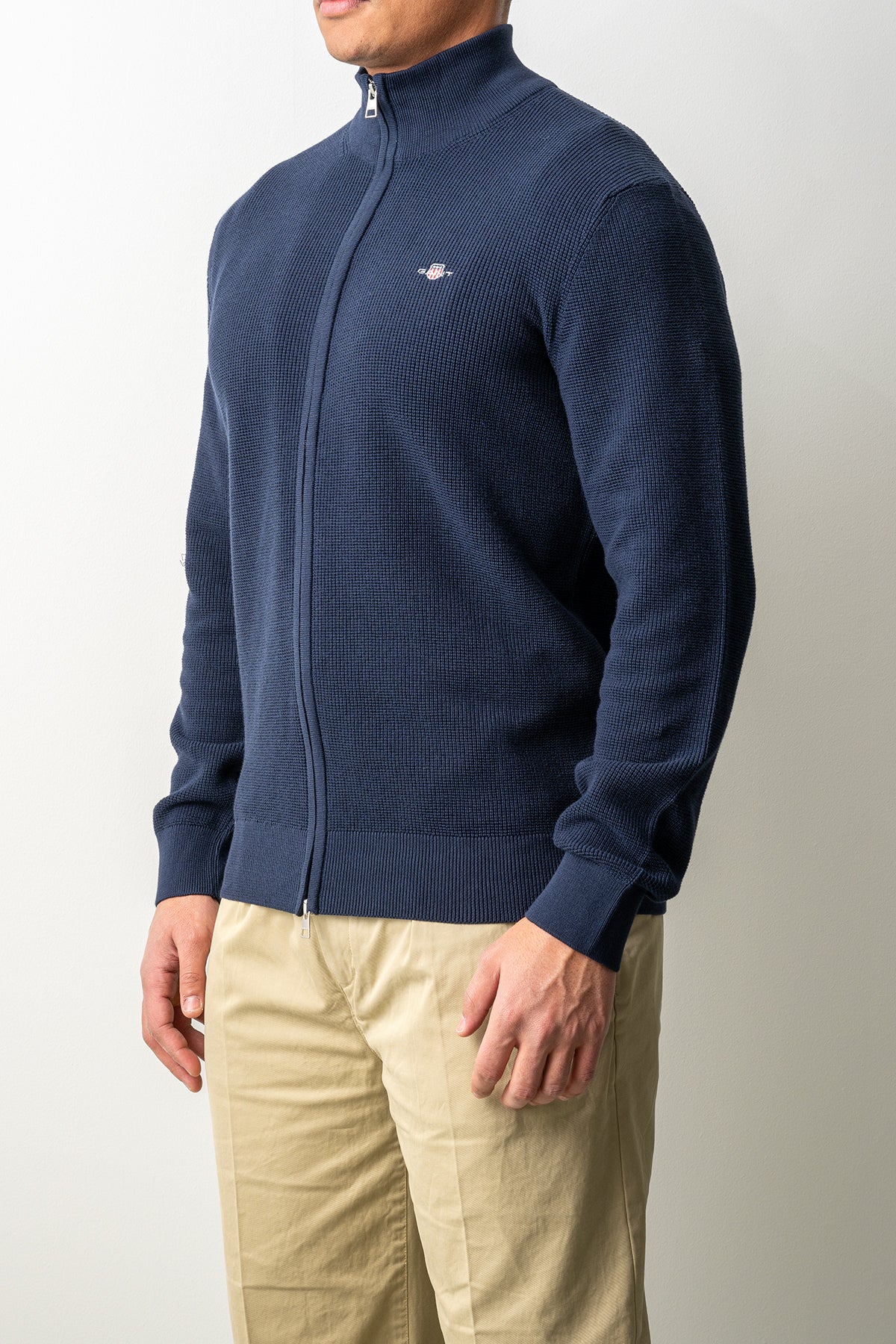 Gant presenterar en stilren full zip cardigan i mjuk bomull, designad för en avslappnad men välklädd vardagsstil. Den blå färgen ger ett tidlöst och lättmatchat uttryck.