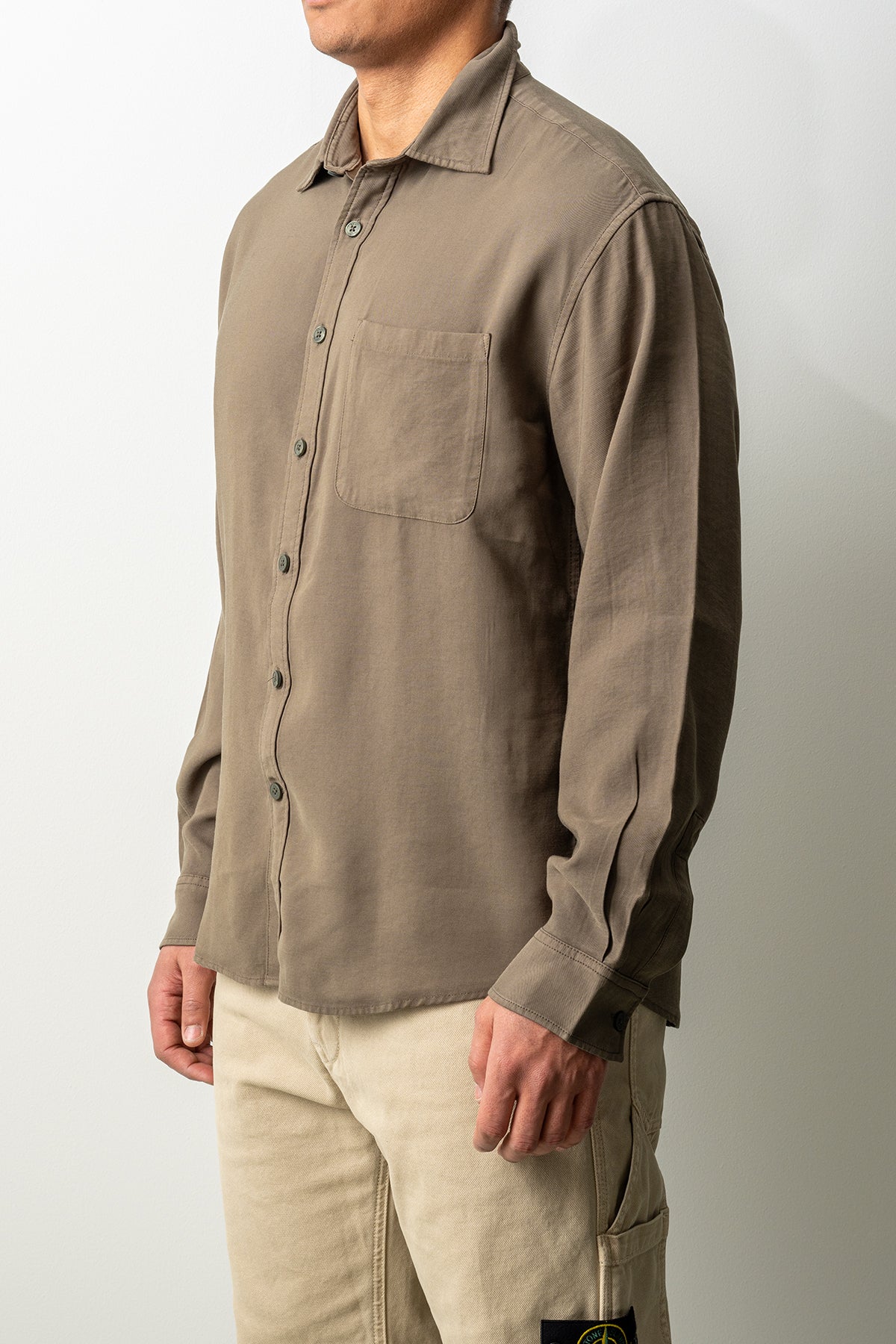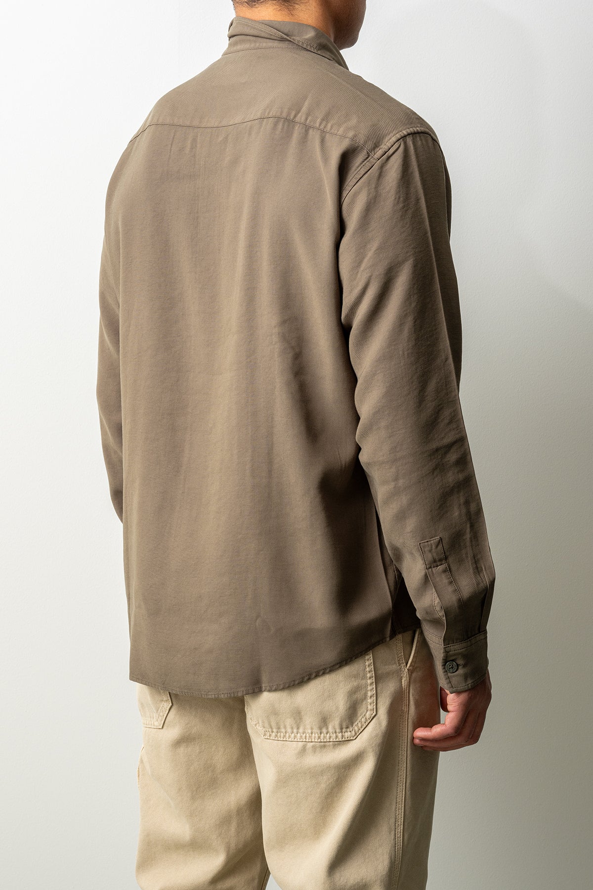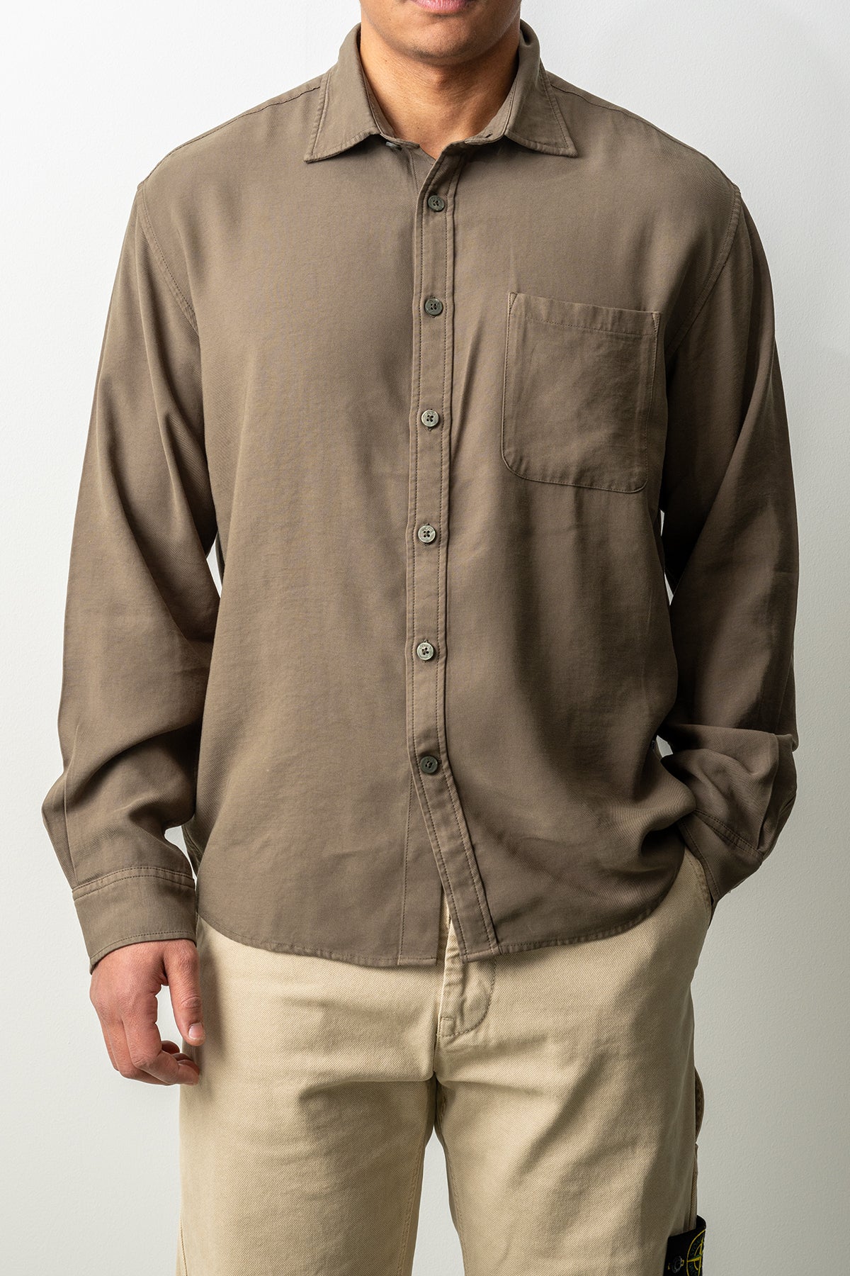Passformen är regular fit, vilket innebär en rak och bekväm silhuett som ger god rörelsefrihet utan att kännas för vid. Den klassiska kragen, knäppningen framtill och den diskreta bröstfickan förstärker skjortans stilrena uttryck.