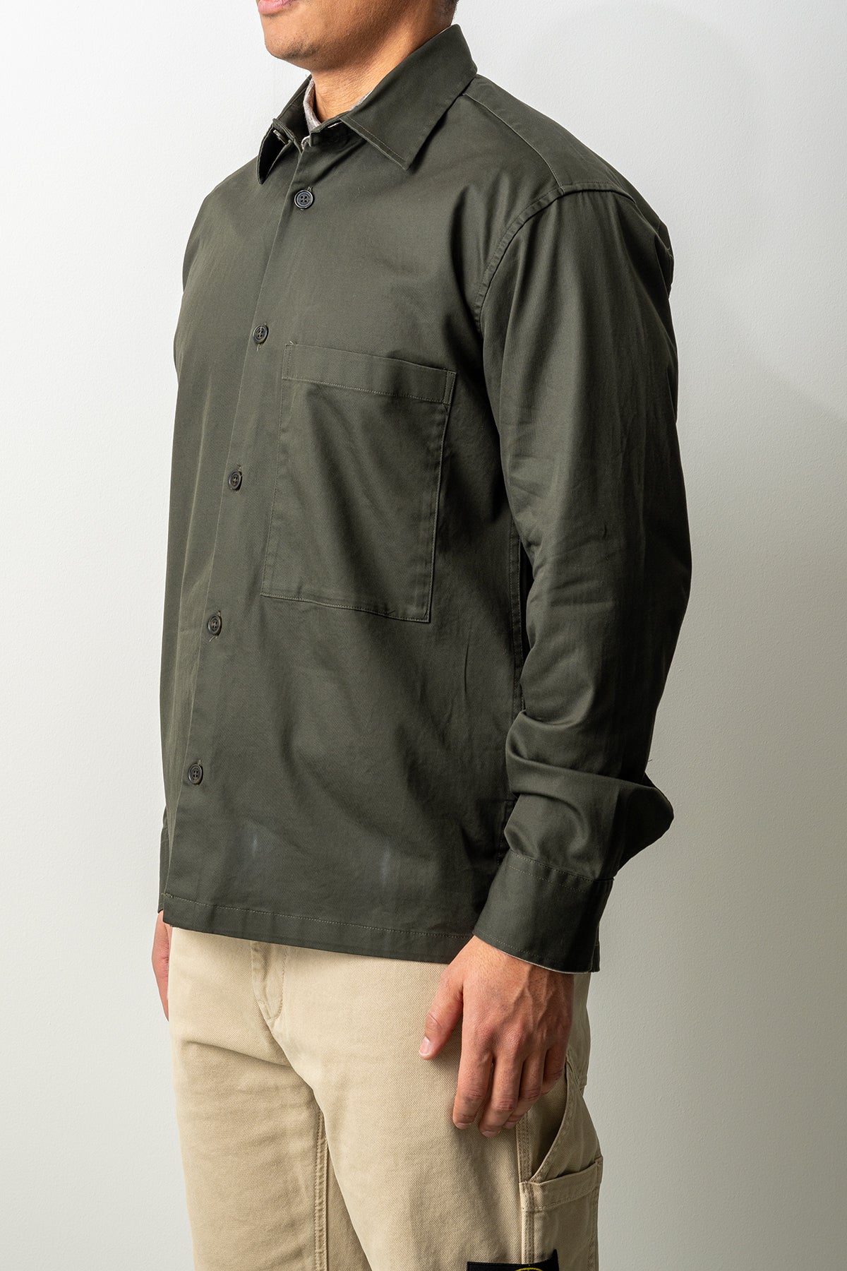 Designen kompletteras av klassisk krage, knäppning framtill och en praktisk bröstficka som ger ett stilrent och funktionellt uttryck. Ett självklart val för en avslappnad men genomtänkt fritidsstil.