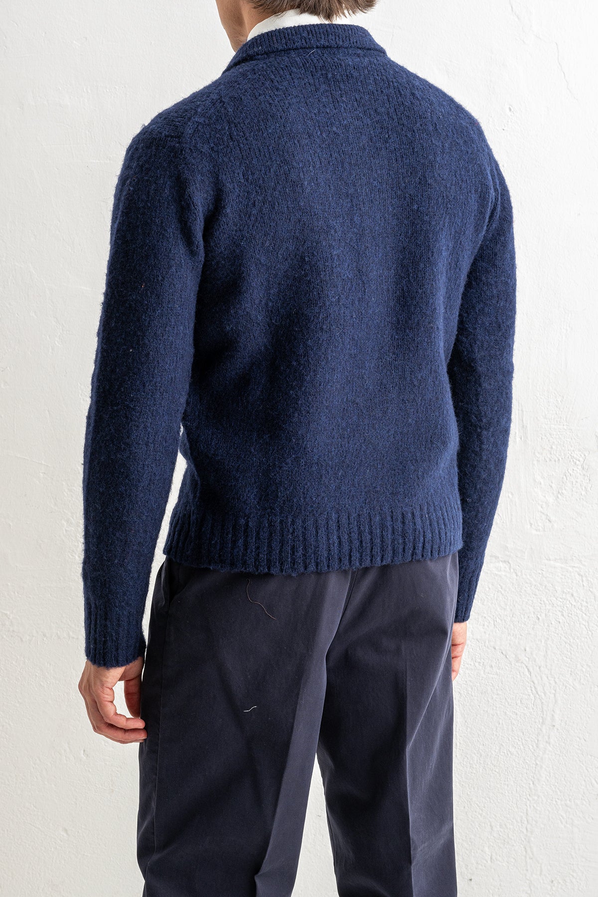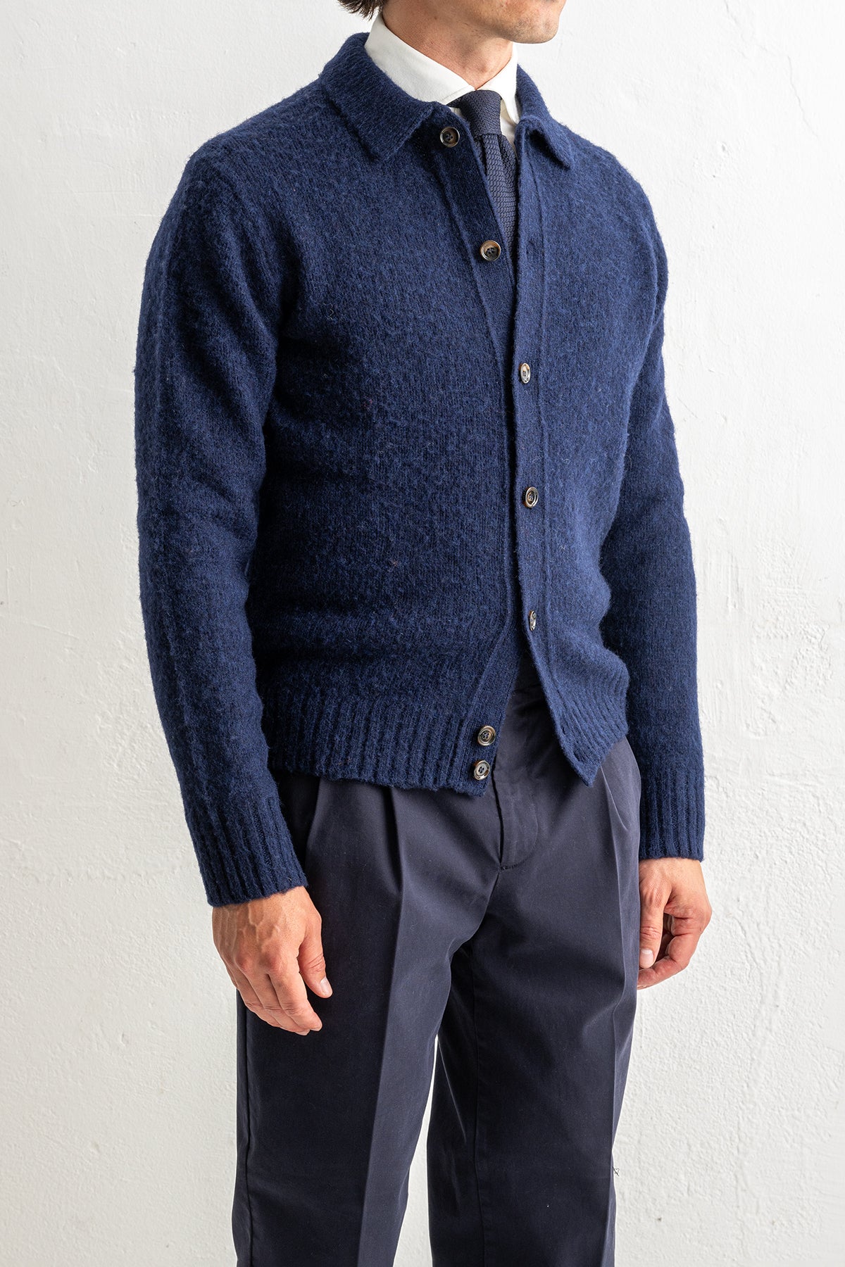 Italienska Aspesi levererar tidlös elegans med denna cardigan i exklusiv ull. Den djupblå färgen ger ett sofistikerat uttryck som enkelt kan kombineras med både skjorta och slips för en mer uppklädd look, eller med en enkel t-shirt för en avslappnad vardagsstil.