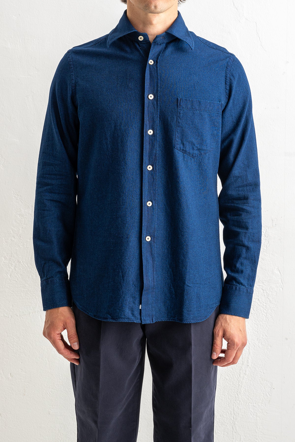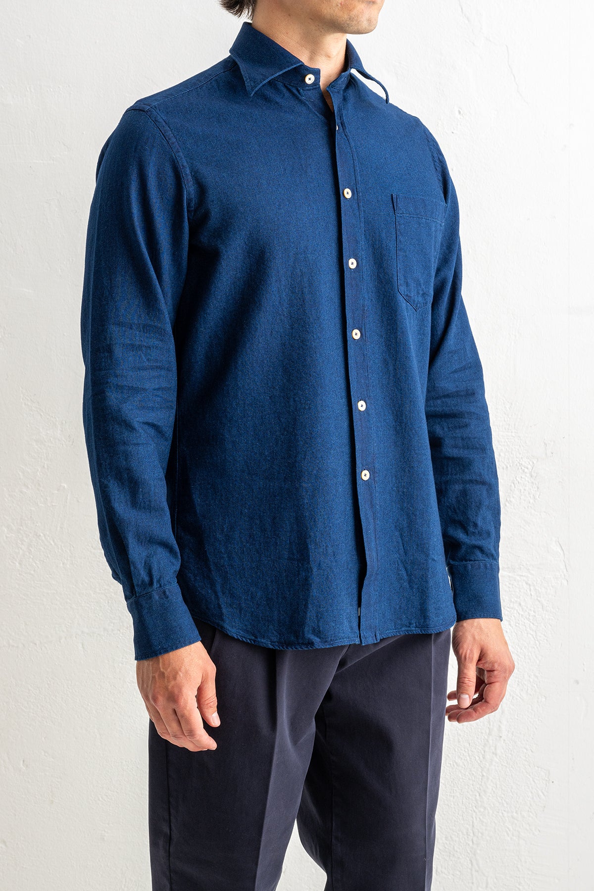 Den djupa blå färgen och denim strukturen ger skjortan en modern twist som enkelt kan matchas med både chinos, jeans och kavaj. En mångsidig favorit i garderoben för dig som vill kombinera komfort med stil.