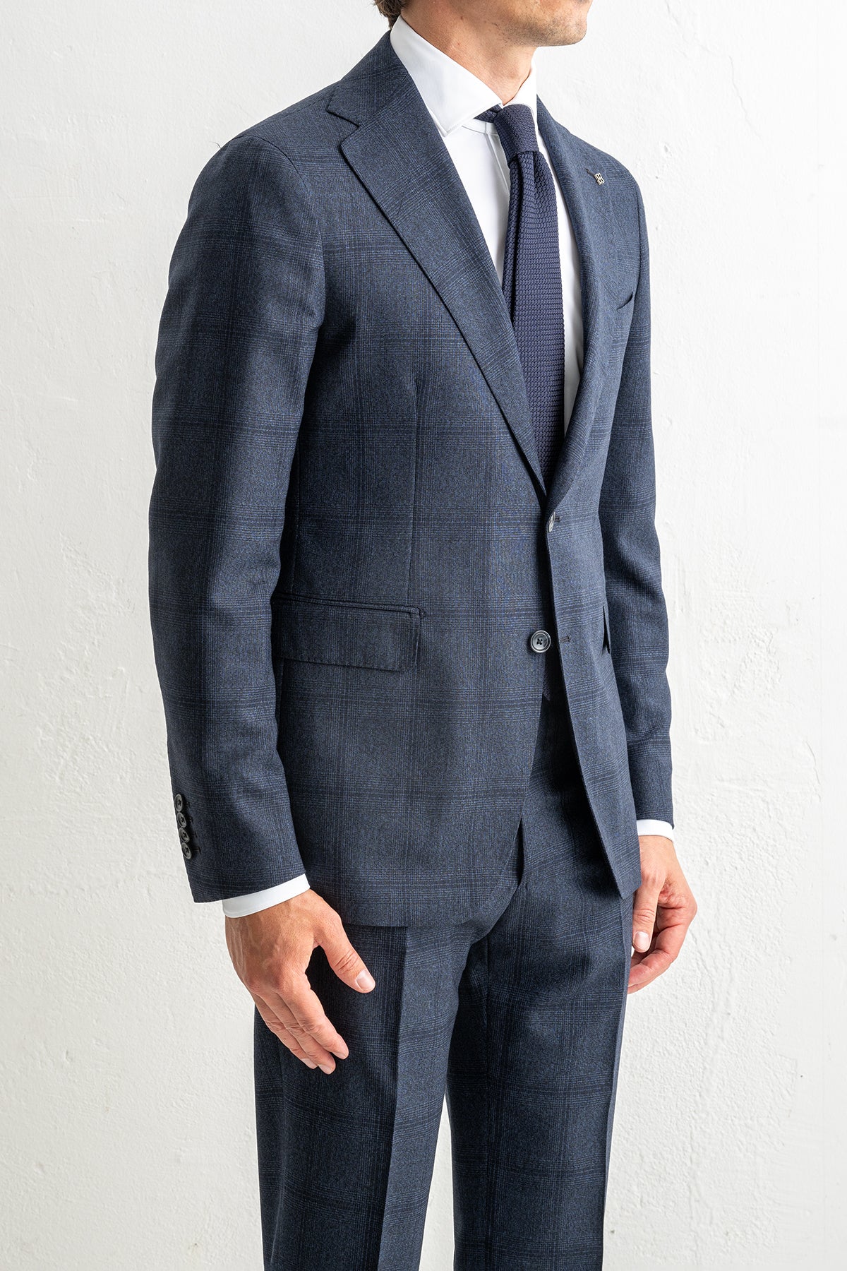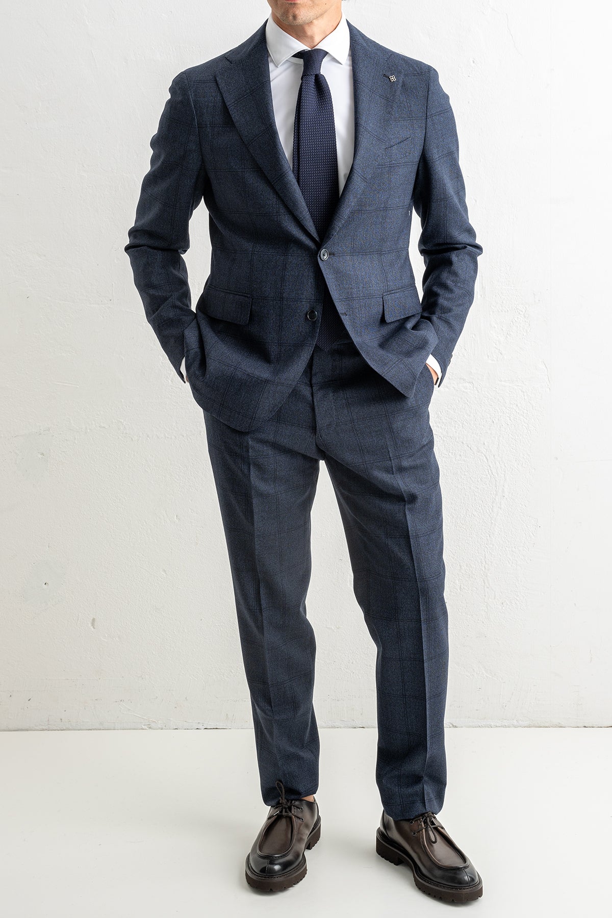 Italienska Tagliatore presenterar en elegant blå kostym i ull som kombinerar tidlös stil med modern finess. Den mjuka ullkvaliteten ger en lyxig känsla samtidigt som materialet andas och faller naturligt, vilket gör den behaglig att bära hela dagen.