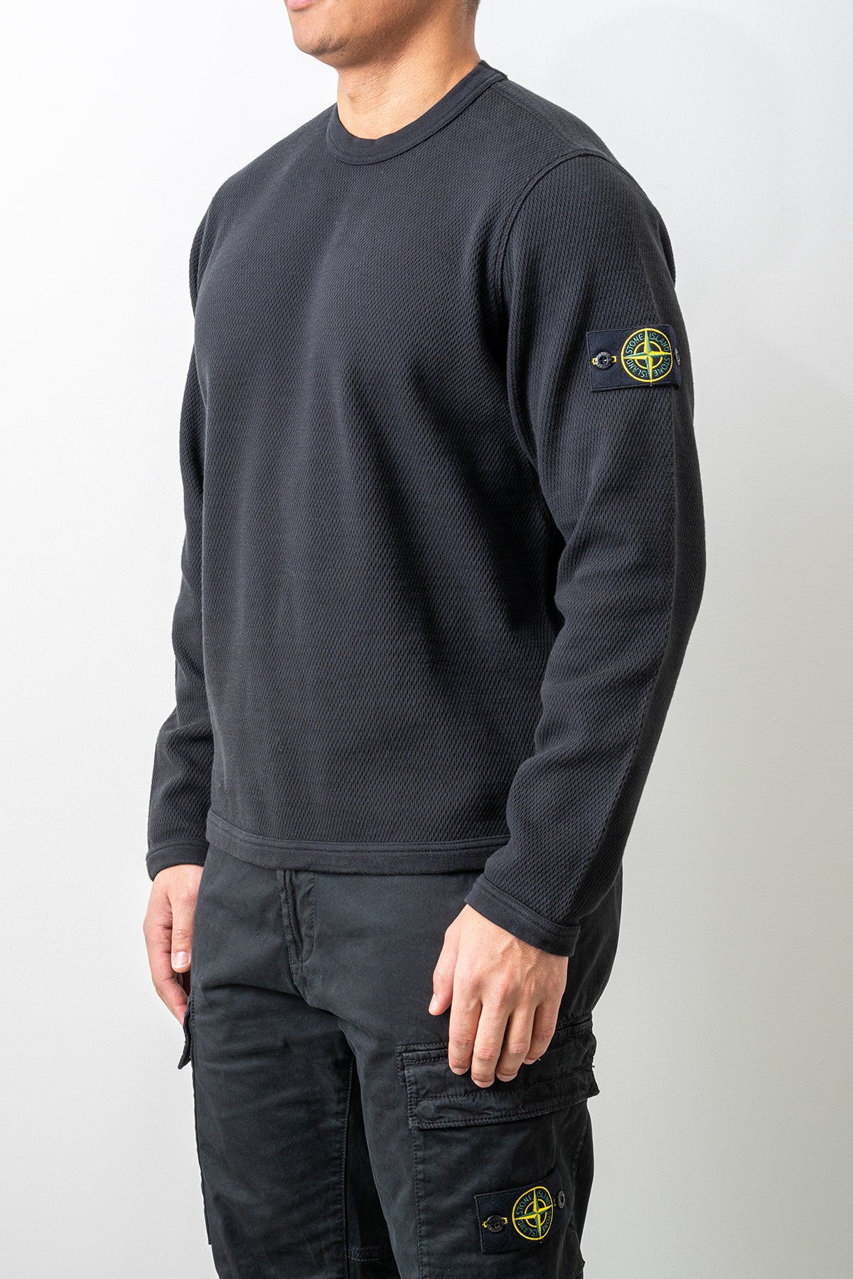 Mesh Stitch Organic Cotton Fleece Sweater 6100011 Black