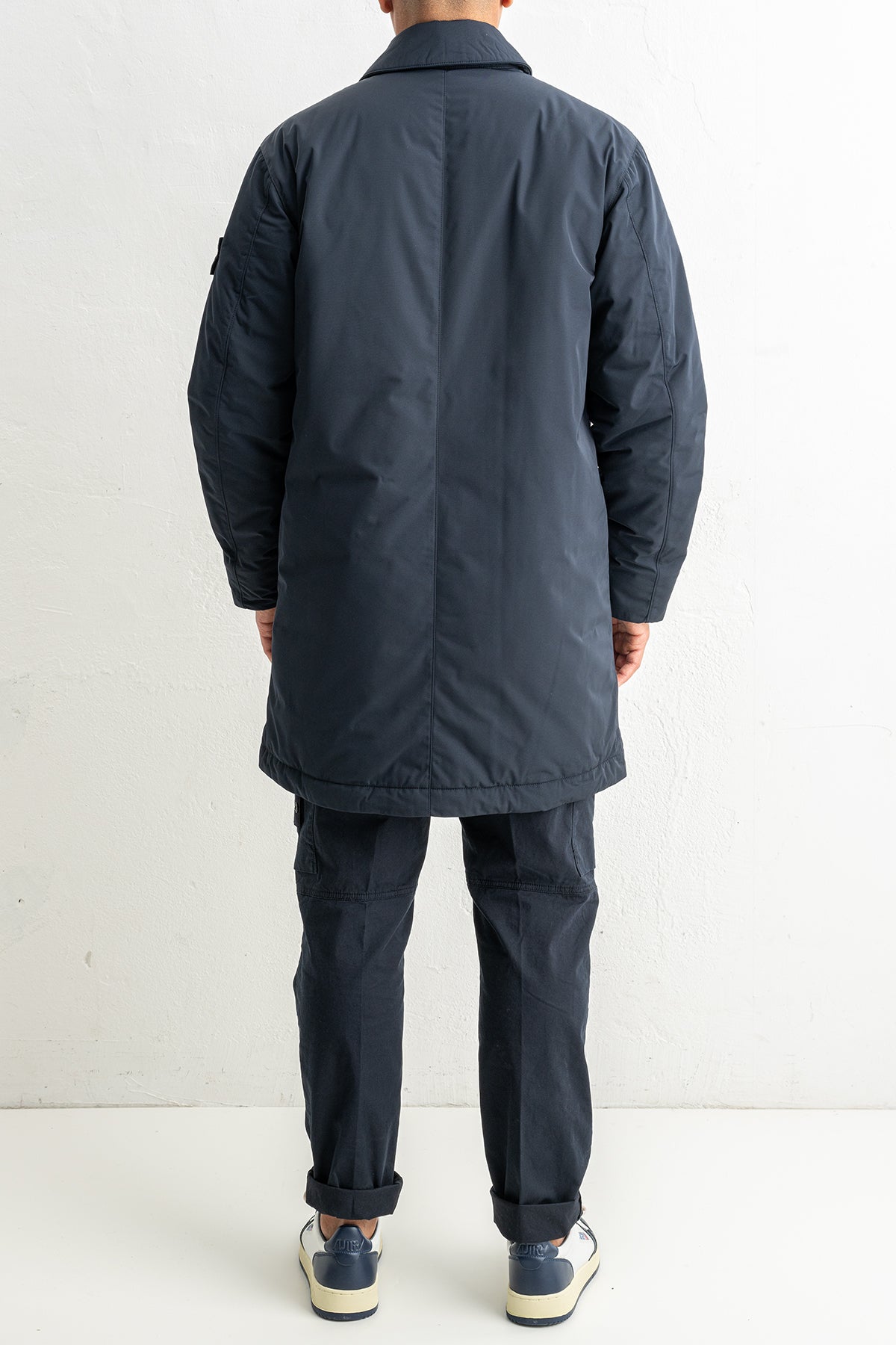 Stone Island presenterar en stilren och funktionell rock i en klassisk navy blue-färg – ett mångsidigt ytterplagg för höst och vinter. Tillverkad i slitstark micro twill kombinerar den både teknisk prestanda och sofistikerad estetik. Tygets täta struktur ger ett effektivt skydd mot vind och kyla samtidigt som det har en lätt, följsam känsla.