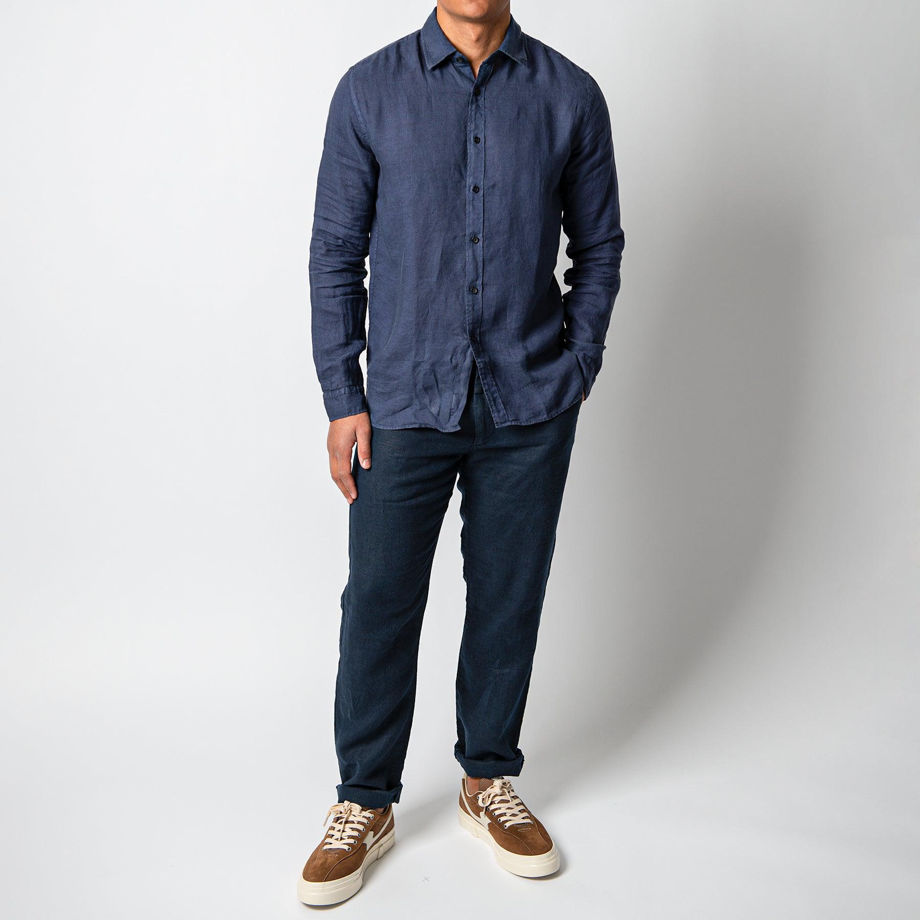 •    Skjortan är sydd i en tunn och sval linnekvalité.