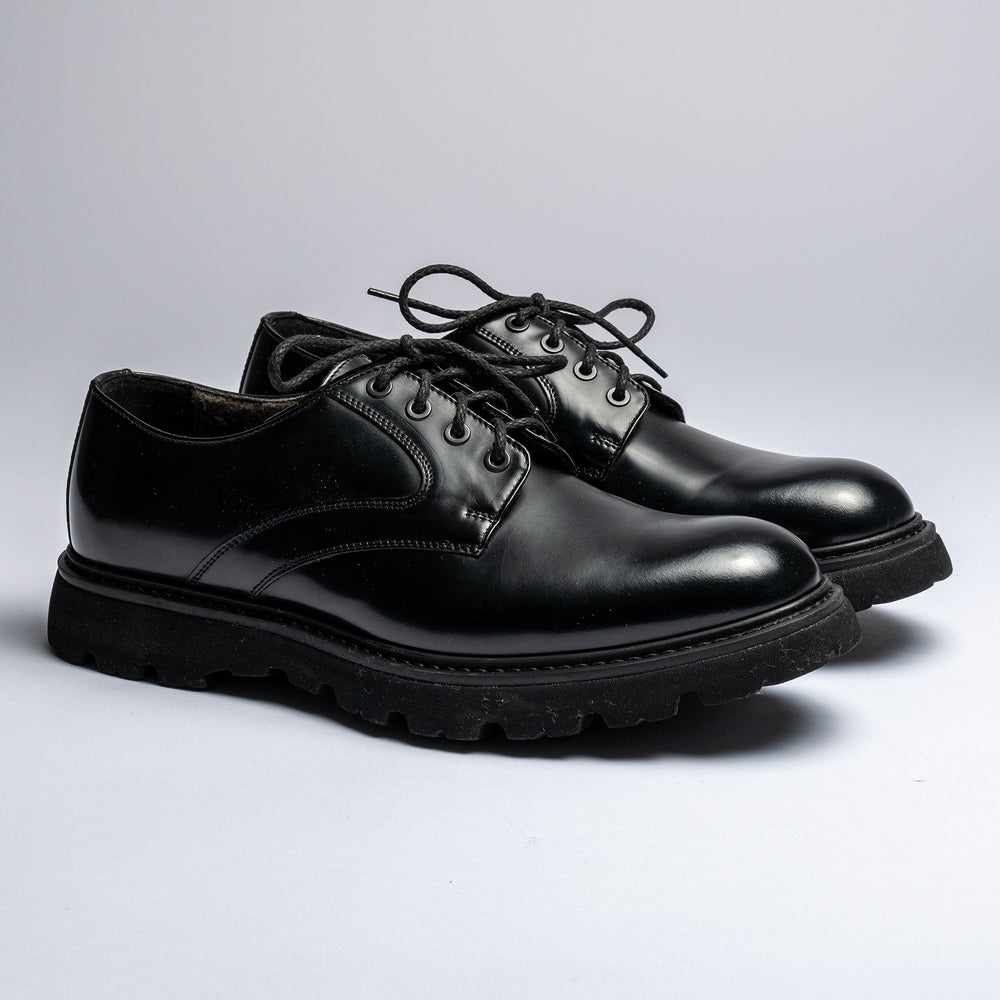 •    Skon är randsydd. Skon har en gummiklädd träsula och är glansig i färgen.