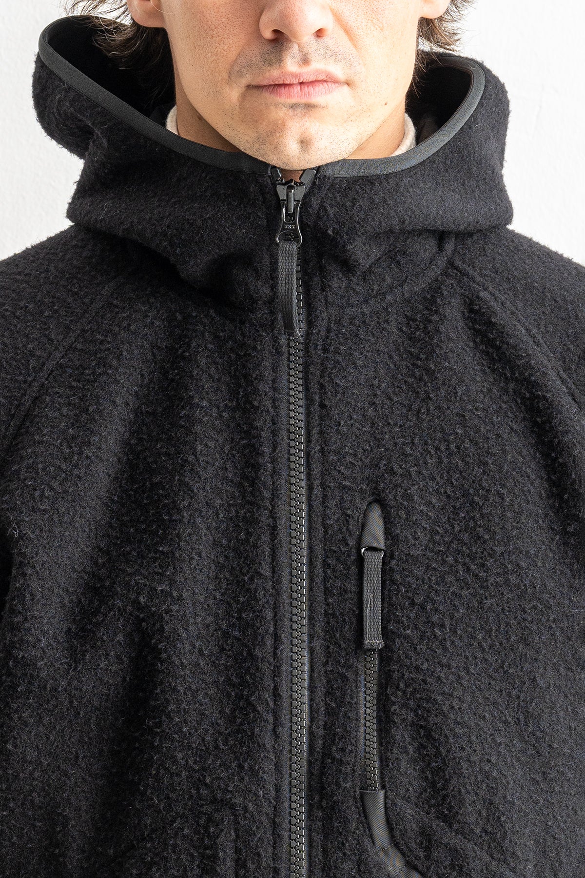 Jackan har en regular passform som ger en avslappnad men välbalanserad silhuett. Materialet i ull skapar en mjuk, isolerande känsla som andas och håller dig varm under kyliga dagar.
