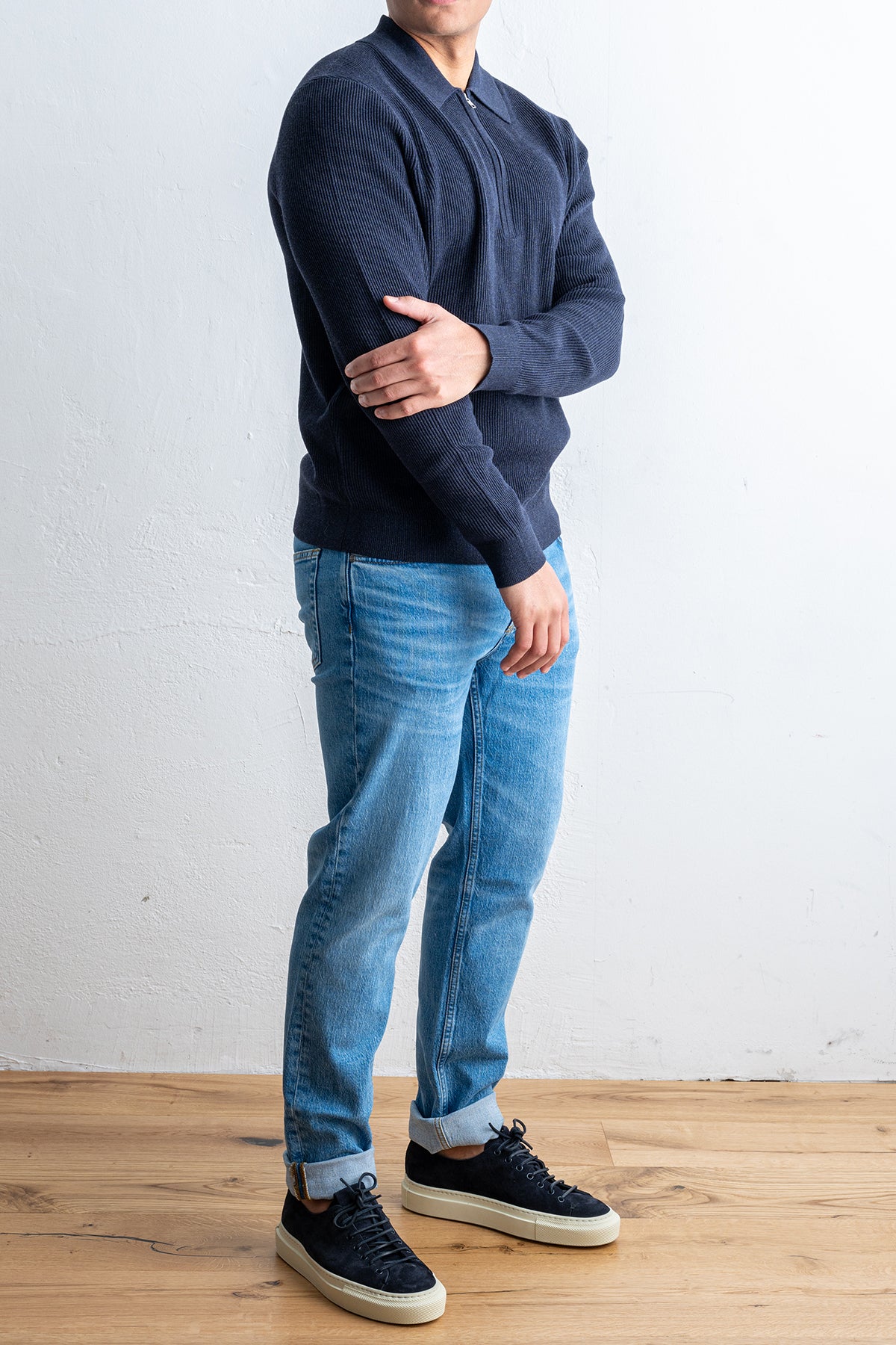 •    En stickad half zip tröja från svensk-danska NN07.