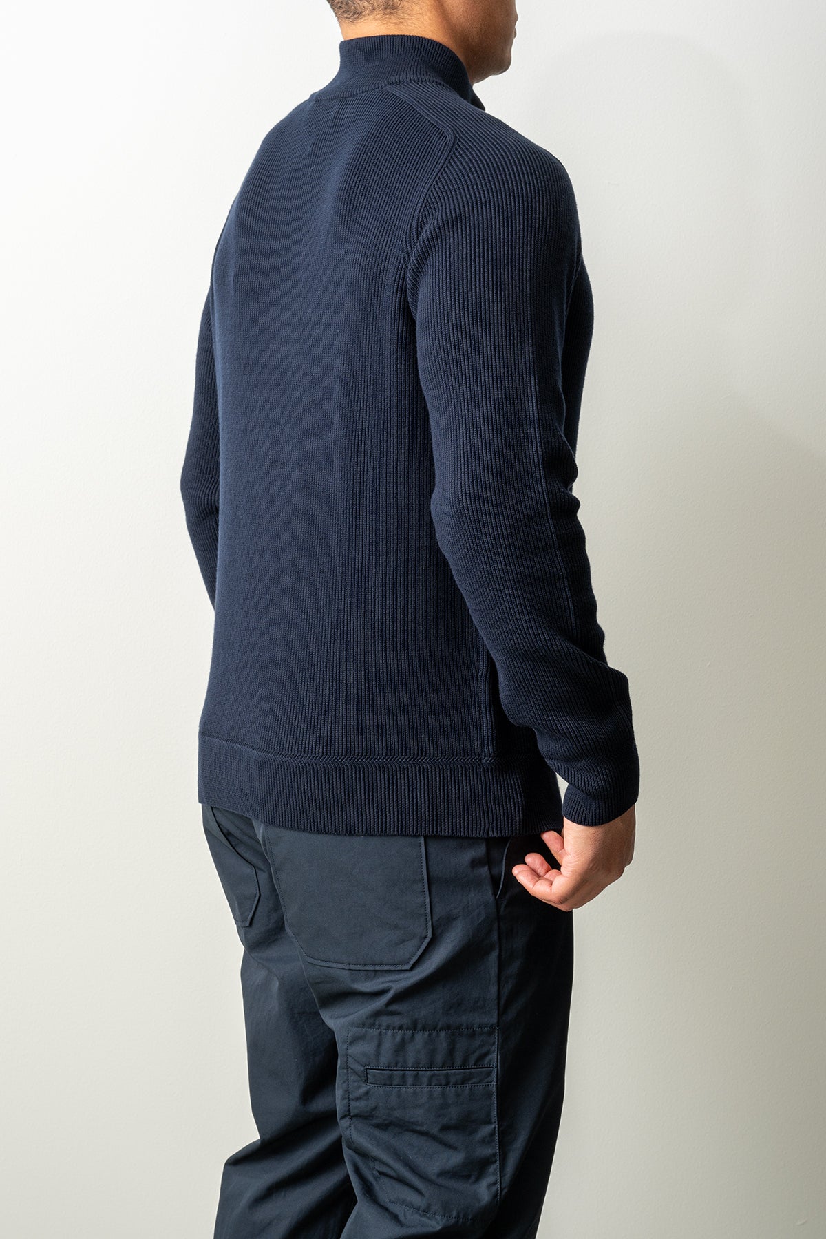 Stone Island presenterar en stilren polo sweater i blå bomull som kombinerar komfort med modern design. Det ribbstickade materialet ger en mjuk känsla och god andningsförmåga, perfekt för vardagsbruk.