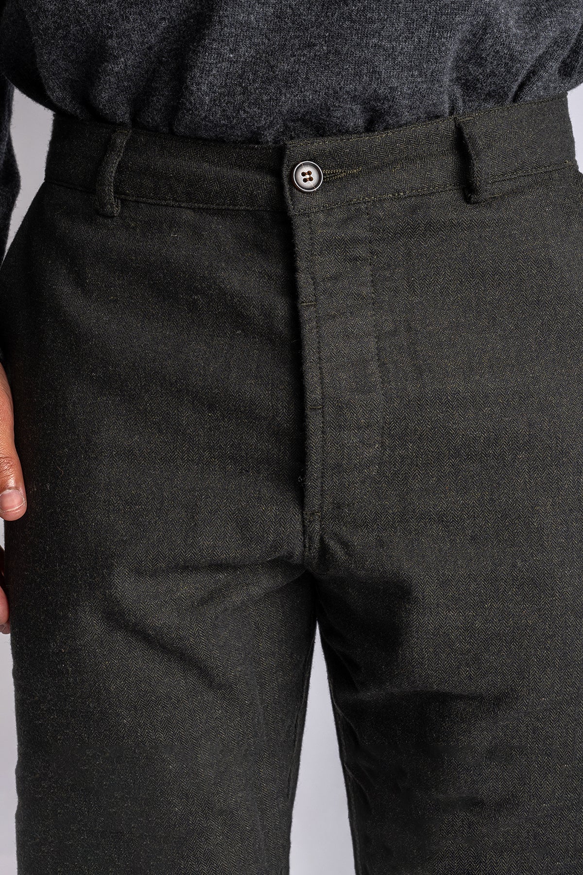 •    Byxan är medelhög i midjan. Byxan har två stycken snedställda sidfickor och två stycken fickor baktill som stängs med knapp.